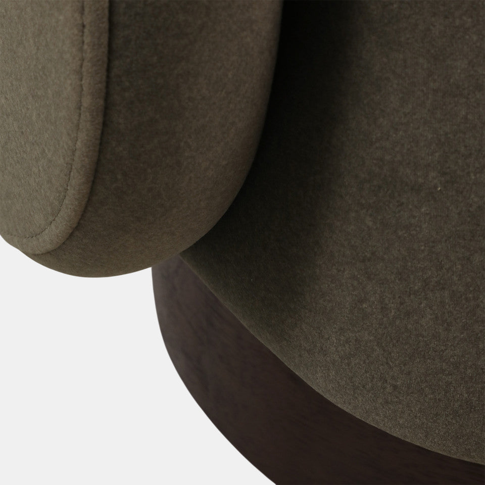 This swivel accent chair brings sculptural presence and effortless movement to sophisticated living spaces. Its plush, lounge-forward silhouette pairs beautifully with tailored interiors, adding both comfort and a polished designer finish.
