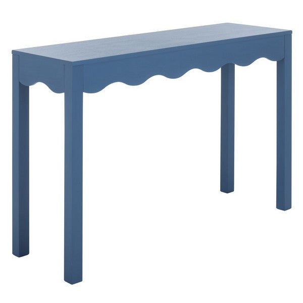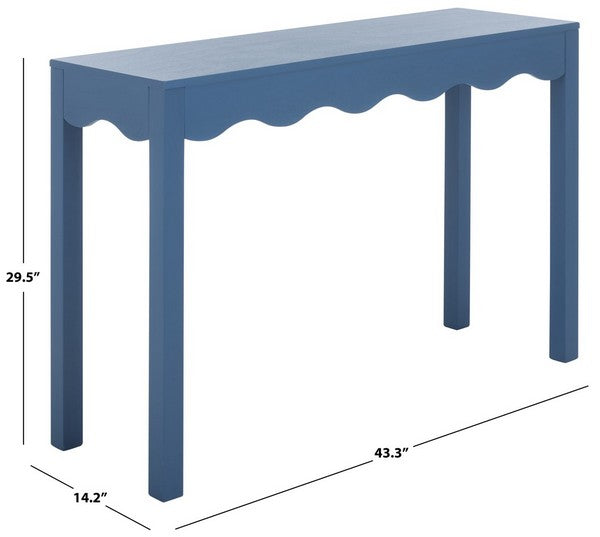 Introducing the Lilith 43 Inch Wave Console in a soothing blue color. This elegant console features a unique wave design that adds visual interest and a touch of sophistication to any room. The soft blue hue provides a warm, neutral backdrop that enhances a variety of interior styles. With its generous 43-inch width, the Lilith Console offers ample space for displaying items or organizing essentials, making it a stylish and functional addition to your living room, hallway, or entryway.